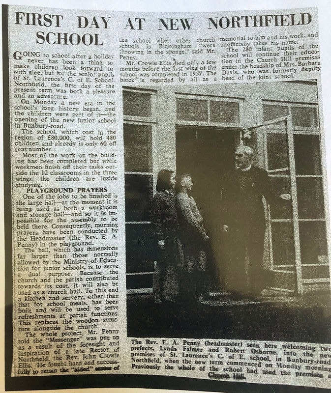 The schools continued to expand, and by the 1960s it needed to use the Northfield Institute building to house some of its classes.  The headmaster Rev E.A. Penny oversaw the schools move to their current site in 1964 for the Junior School, followed in 1972 for the Infant School.