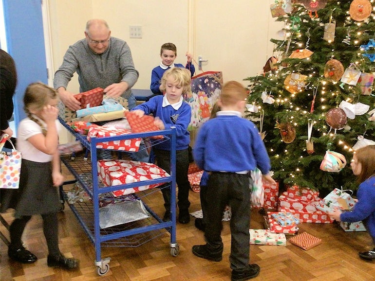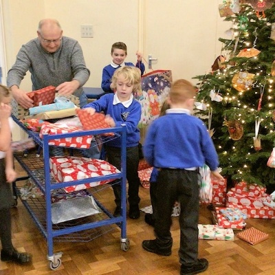 • We helped load up the gifts to send to Birmingham City Mission, for children who won’t get much at Christmas time.