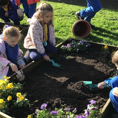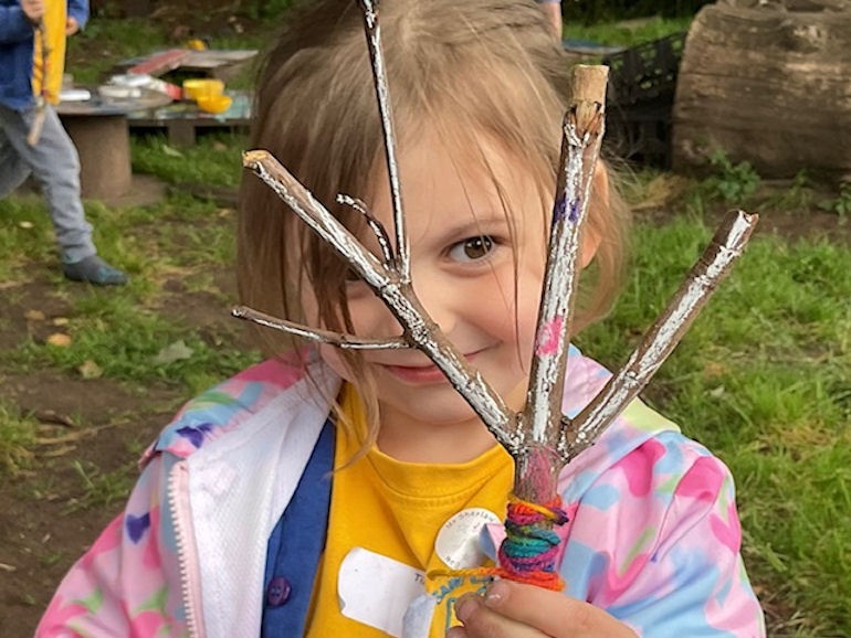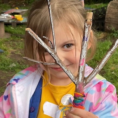 Forest School – overseen and organised be Mrs Desogus who is level 3 forest school trained. The children are shown practical natural activities including seasonal natural crafts such as flower stamping and twig wrapping; and closely supervised outdoor skills such as whittling (with carrots), sawing ‘leaf cookies’, fire-lighting with flints. They can choose to have a go at the activities or to explore the area and climb, swing, make mud pies or look for minibeasts etc.